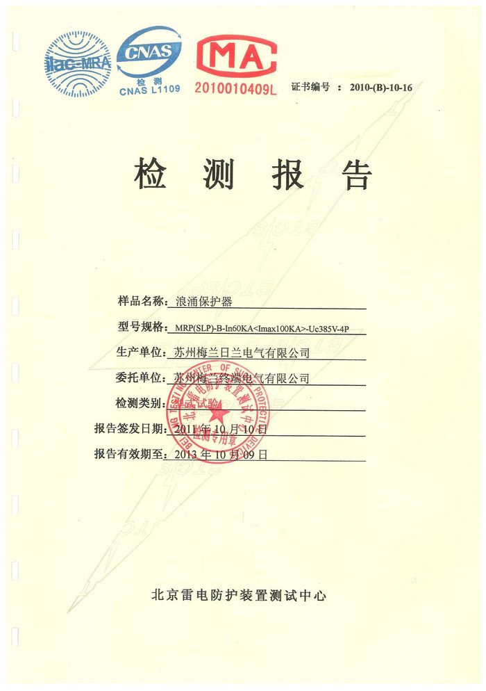 浪涌 MRP60KA資質(zhì)證書