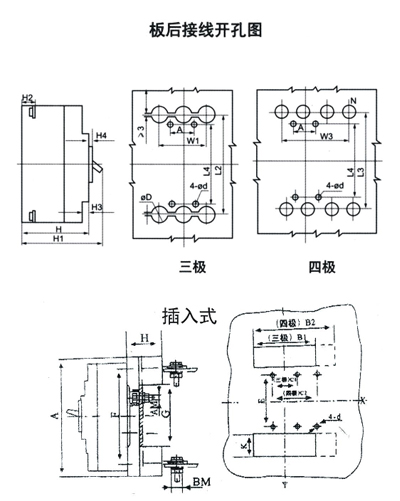 A型:N極不安裝過(guò)電流脫扣元件,且N極始終接通,不與其它三極一起合分;