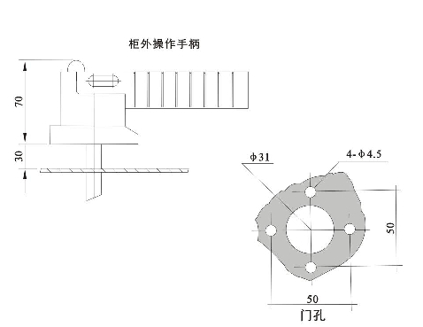 柜內(nèi)操作:手柄直接安裝在開關上。