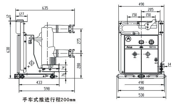 手車式MRVSl-12斷路器650寬外形尺寸圖