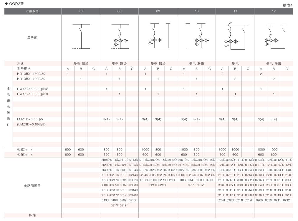 GGD柜的主電路設(shè)計7129個方案,共298個規(guī)格《不包括輔助電路的功能變化及控制電壓的變化而派生的方案和規(guī)格)。