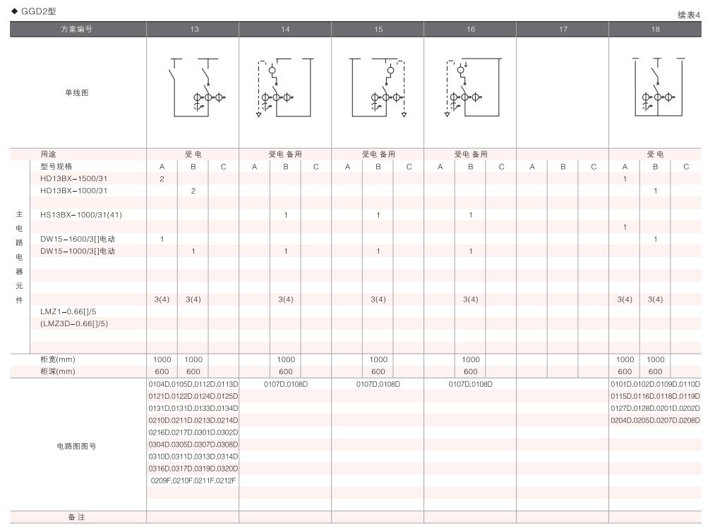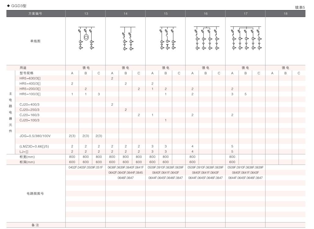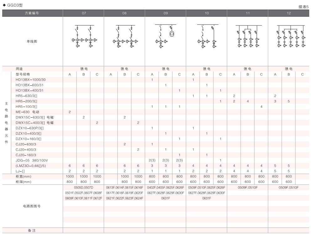 此外,為適應(yīng)無功補償?shù)男枰O(shè)計了GGD電容補償柜,其主電路方案4個,共12個規(guī)格。